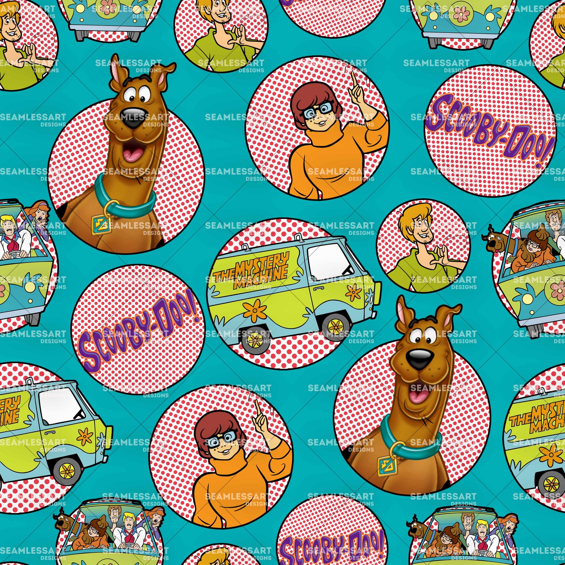 Scooby Pop Art Seamless Pattern – Retro Comic Digital Paper for Kids Fabric